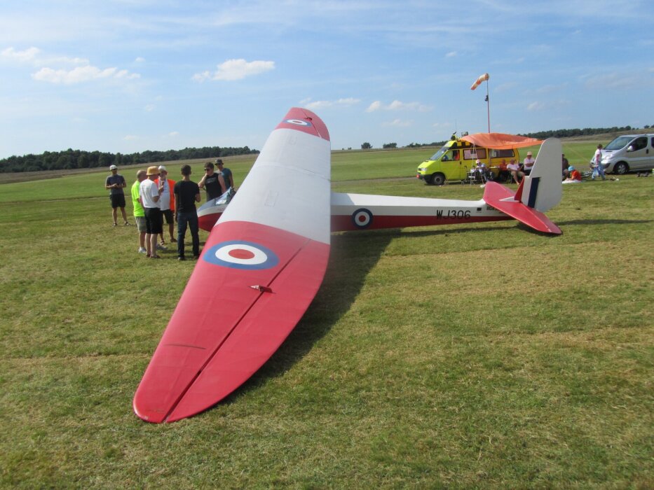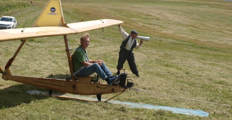 Het zweefvliegtuig was gemaakt van hout en linnen. En je zat op een plankje van waaraf je het toestel stuurde.